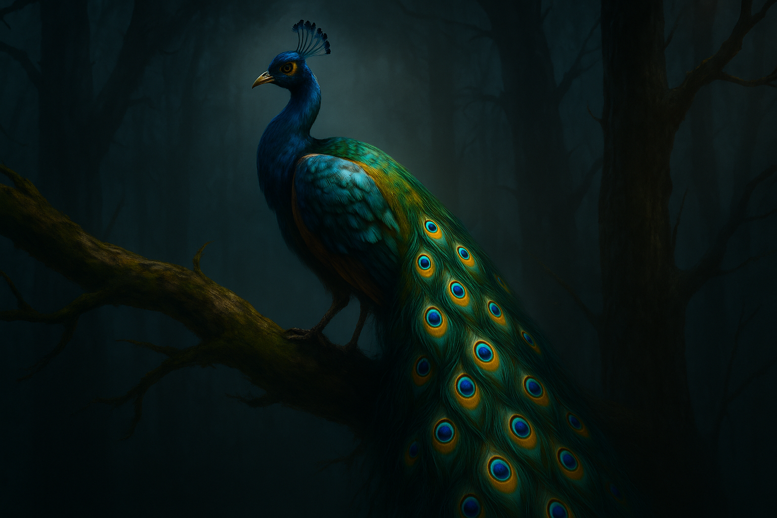 In medieval Christianity, it symbolized immortality, resurrection, divine glory, and eternal life. The “eye” patterns in its plumage signify divine vigilance and omniscience, while its radiant beauty reflects the soul’s purity and spiritual splendor, making the peacock a universal emblem of transformation and higher consciousness.