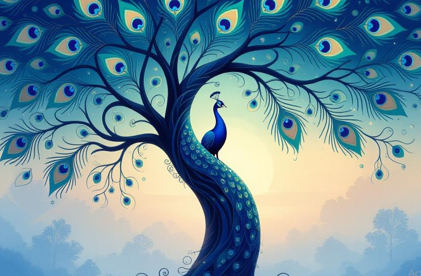 In traditional Hindu iconography, the peacock’s resplendent plumage symbolizes the radiance of divine consciousness — each “eye” in its feathers reflecting infinite awareness. In Dr. Pillai’s interpretation, the peacock’s flight at the “speed faster than light” refers to the instantaneous movement of consciousness itself.