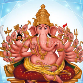 This Interactive Fire Lab will be performed to invoke Ganesha his form as Veera Ganapathi (also spelled Vira Ganapathi). In this form he is known as the “Valiant Warrior” who helps us overcome fears and threats. Veera Ganapathi can bless us to develop courage so we can face life’s challenges with confidence and overcome them. He is often depicted in a dynamic, commanding pose with 16 arms. His numerous arms carry several battle implements such as a goad, discus, bow, arrow, sword, club, hook, shield, spear, mace, battle axe, trident, hammer, Nagapasha (serpent noose) and victory flag. His weapons are said to be symbols of tremendous mind powers that Veera Ganapathi can use to remove ignorance and evil. This fire prayer will be done during the beneficial obstacle removal energies of 4th Moon phase, a powertime for Ganesha. On this day, the Moon will be in Jyestha, an immense star of courage and conflict resolution. This is an excellent time to invite Veera Ganapathi to shine his splendid brilliance to increase our courage and our confidence.